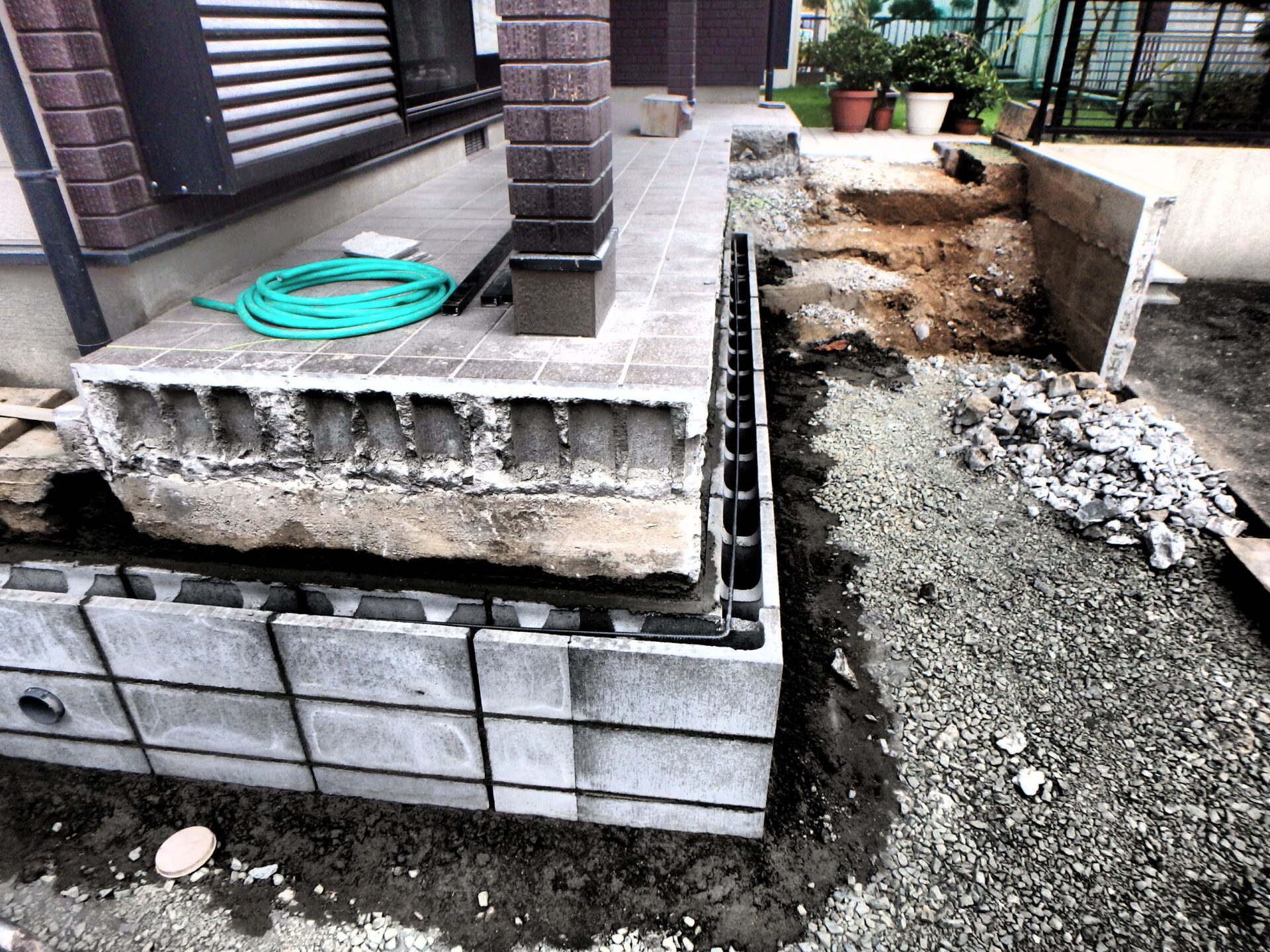 - 建物側へ負担をかけないため、強度のあるCP型枠ブロック施工をしました。